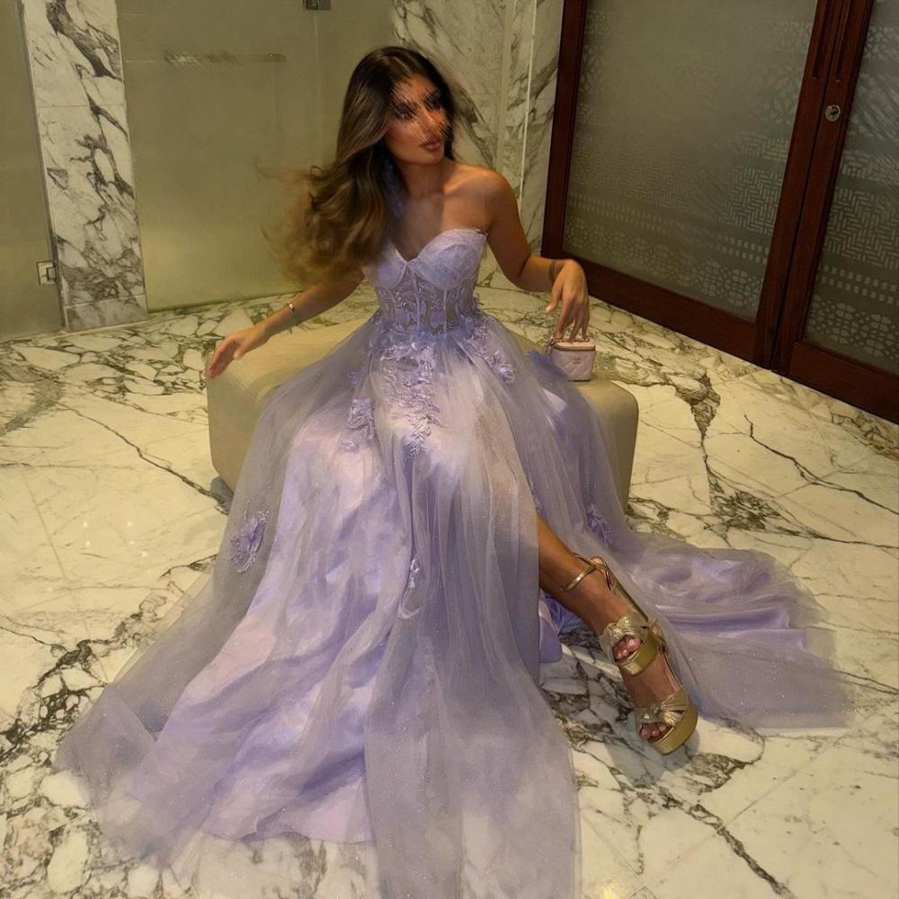 فستان سهرة راقي بخامه تل تطريز ورد 0129