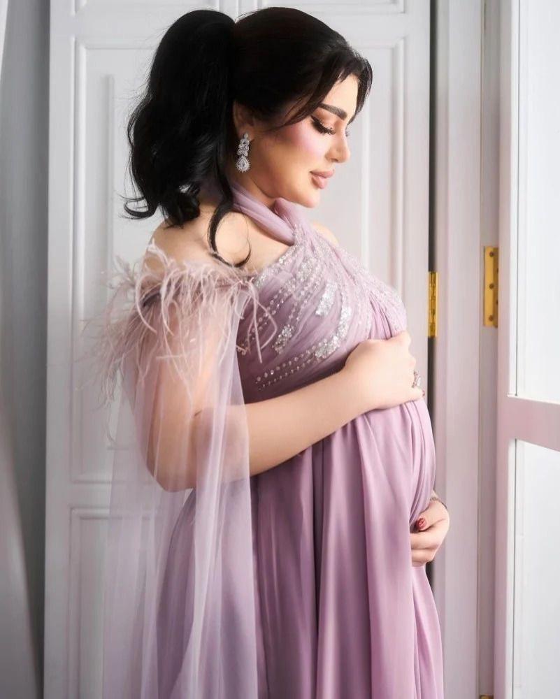 فستان سهره مناسب للحوامل بخامه شيفون ميلانو كلوش بطرز بكريستال فاخر 039
